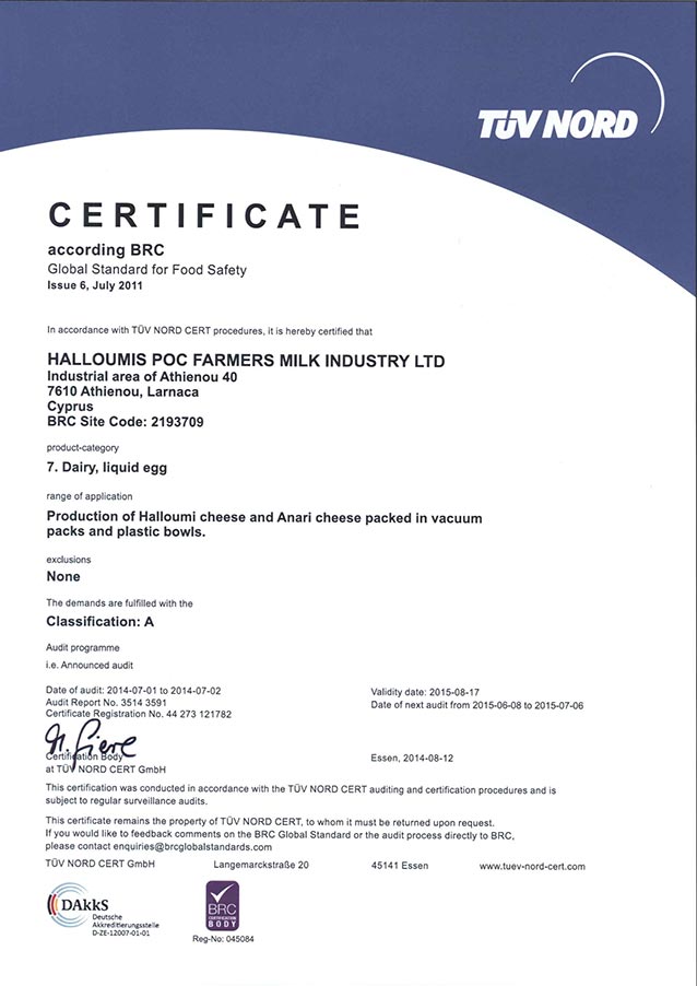Our products are vacuum packed and packages carry a quality mark and a registration number of the European Union that guarantees the cheese is produced under strict hygienic conditions and is a high quality product made of pasteurised milk.